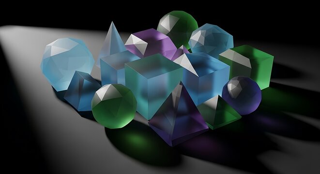 Abstract Geometric Shapes with Translucent Colors and Dramatic Lighting.