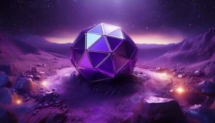 Glowing crystalline polyhedron with intricate tessellations