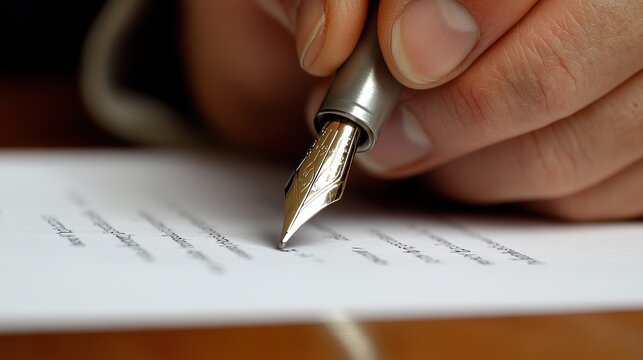 ビジネスや法律目的の文書に万年筆で書かれた部分のクローズアップ