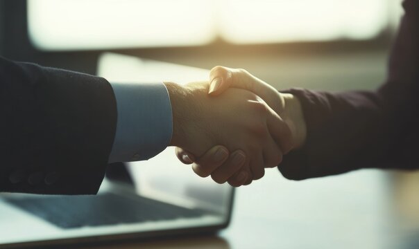 商务谈判合作成功的握手瞬间