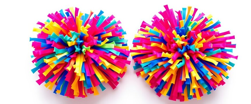 brightly colored spakle pom pom fluffy balls white background childrens Education