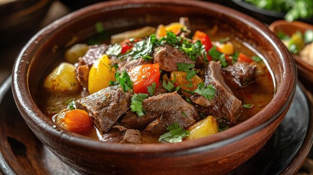 Bowl of a popular poncha de cabra recipe with vibrant ingredients displayed elegantly, captured in a way that highlights the dish, perfect for culinary designs and artistic presentations.