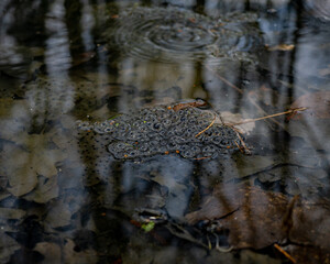 frog caviar in the water. The birth of frog tadpoles in the pond