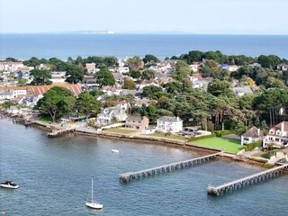 Aerial view of Poole, a coastal town in Dorset, southern England, known for its large natural harbour and sandy beaches