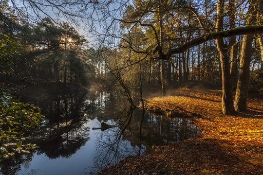 The Sun sets over Poole Harbor in Dorset. Hamworthy pier jetty