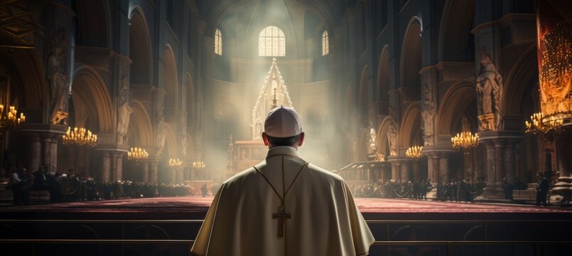 Pope leading the worship at the church. Generative AI technology.