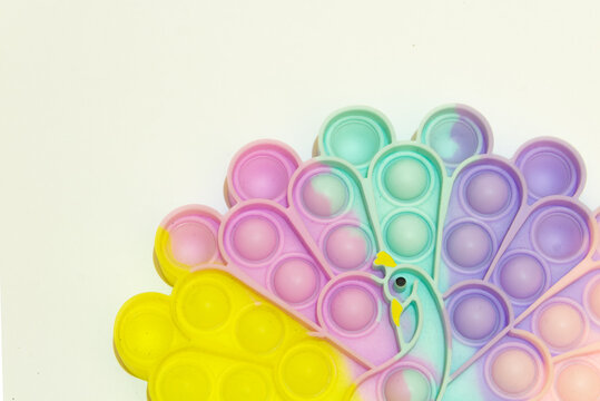 Color sensory pop it antistress toy for children. rainbow toy on white background.Pop it trendy toy.Copy space.