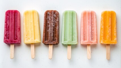 Bright fruit popsicles isolated on white — sweet strawberry and citrus orange flavors