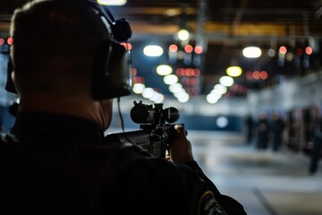 Professional Photography of security officers receiving training on detecting and responding to suspicious behavior an, Generative AI