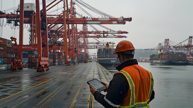 Industrial port with data visualization overstock narrating shipping logistics