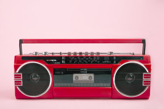 Vintage boom box style portable stereo radio, cd, cassette tape player and recorder isolated.