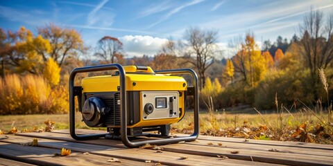 Yellow Portable Generator on Wooden Bench in Autumn, generator , portable , power , autumn