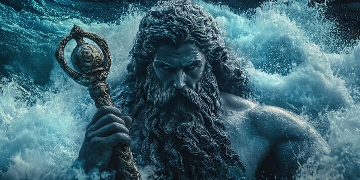 Poseidon Rising From the Sea with Trident Powerful God Mythology