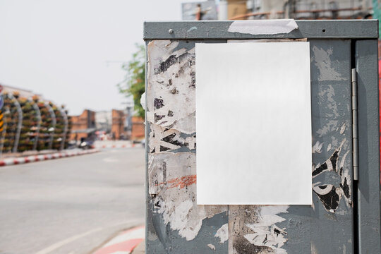 Mock up of vertical poster billboard with blurred cosmetic shop background.