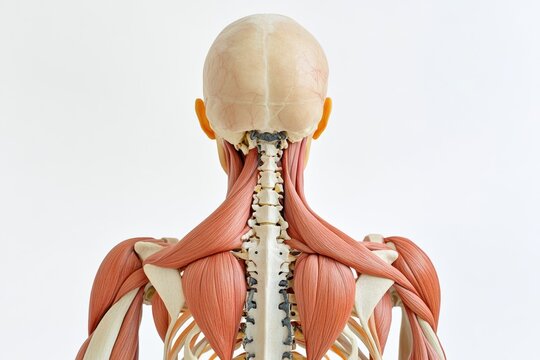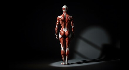 Anatomical representation of the human muscular system from a posterior view in dramatic lighting