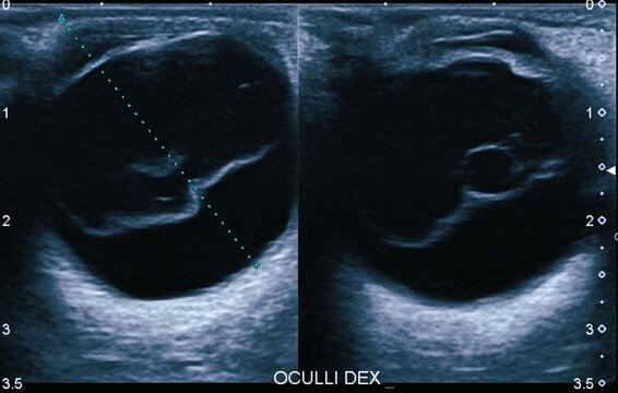 Posterior vitreous detachment.USG Posterior vitreous detachment (or hyaloid detachment) occurs when the retinal layer and vitreous body/posterior hyaloid membrane detach