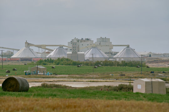 a potash mine with wheat fields