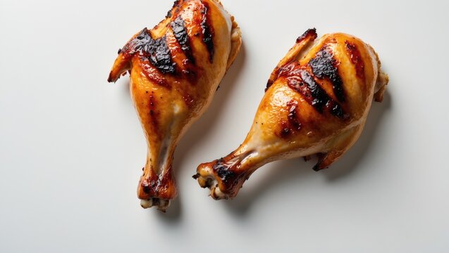 Delicious roasted chicken drumsticks falling on transparent background