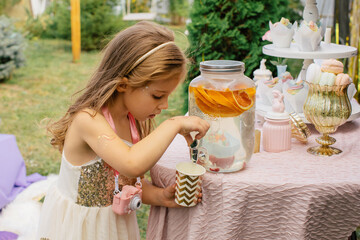Birthday girl pouring on lemonade