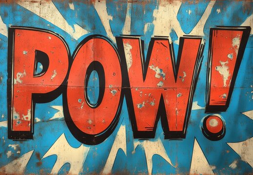 Comic book style retro 'POW' text illustration with vintage effect and stars