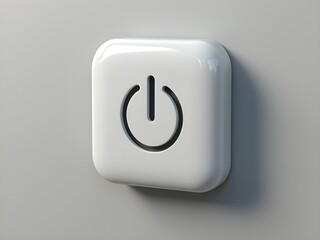 Glossy red push button shining on neutral gray surface with chrome bezel