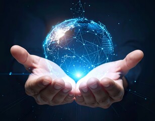 Global digital network overlay on earth globe showing illuminated continents and borders in space