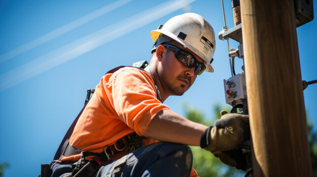 Electrician climbing a utility pole