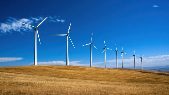 Expanding wind power capacity with new turbines being added to an existing farm located in a rural countryside landscape  The wind turbines stand tall against the blue sky