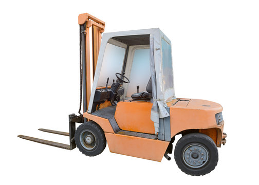 A large and heavy valve for water pipe rests on the forklift truck for transportation