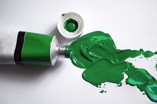 green paint tube. painting flat lay concept
