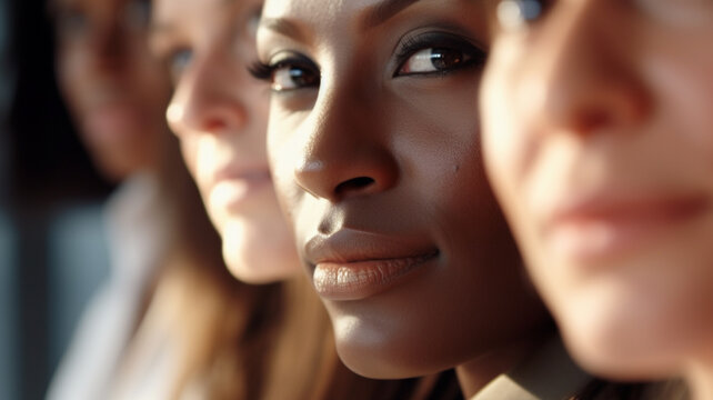 Sisterhood and women power and diversity concept. Happy business woman working together