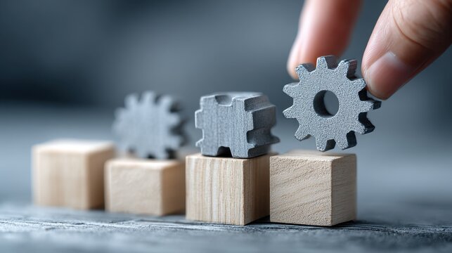 A businessman collects wooden puzzles with the word Theory and Practice. Obtaining information and application it in practice. Getting experience. Psychology and science. Knowledge economy.