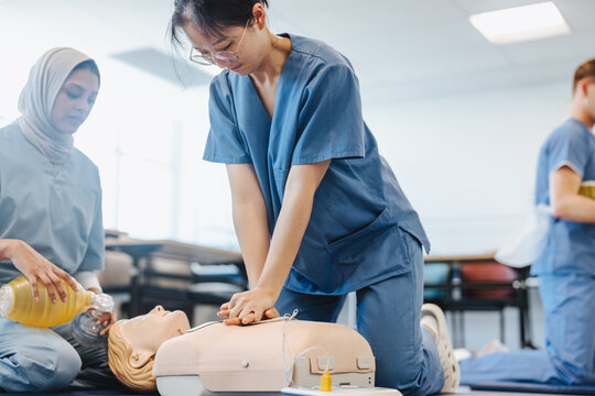 Practicing Cpr Techniques With Training Mannequin Images