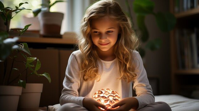 A child practicing guided relaxation with a mindfulness app on a tablet, with soft lighting and a calm expression, highlighting the use of technology in mental health support. Illustration,