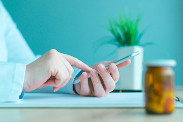 General practitioner using smartphone in office
