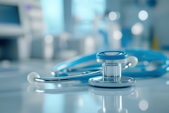 Stethoscope on a clinical desk in a modern healthcare environment during morning hours