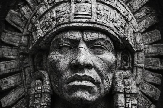 Majestic mayan stone carving depicting an ancient ruler wearing traditional headdress