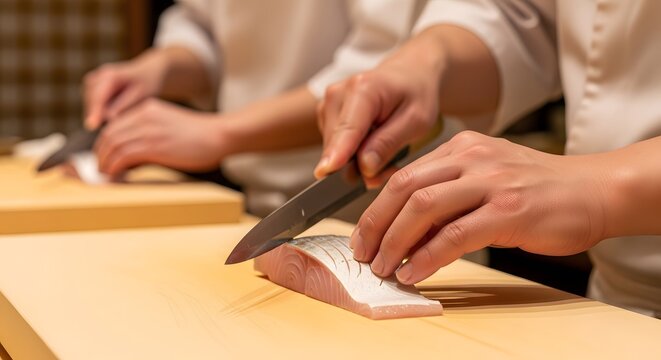 Closeup of a male hand with wedding ring using a scraper tool to apply wallpaper smoothly at corner during renovation, Generative AI