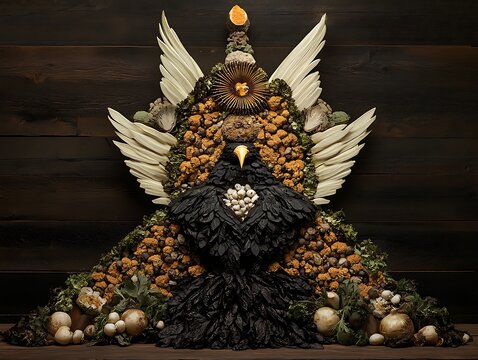 A conceptual and creative pattern has been made from precisely chopped vegetables.
