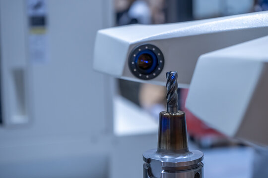 endmill cutting tools special, 4 teeth. spiral right hand. material Carbide and high speed steel, coating Titanium nitride. isolated on white background.