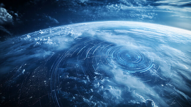 Physician reviewing global health analytics overlay with charts and world map in clinic