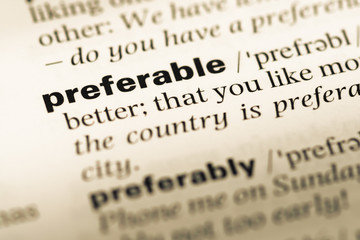 Close up of old English dictionary page with word preferable
