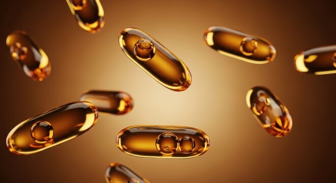 Golden vitamin capsules with a pregnant woman in the background, symbolizing prenatal health, nutrition, and essential wellness support for expecting mothers, Generative AI