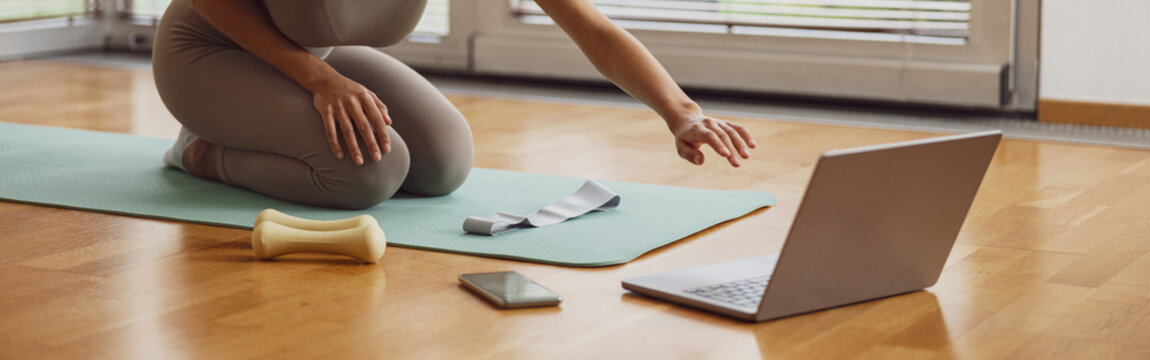 Group preparing for home yoga mat workout in sunlit living room, morning stretch routine