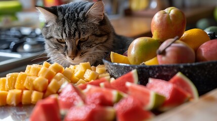 Preparing fresh cucumber amidst colorful fruits for healthy eating