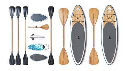 Mockup, set up of accessories for paddle surfing, on a flat background.