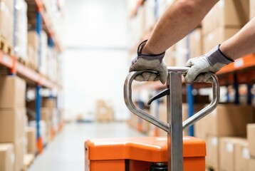 Warehouse worker sealing cardboard box with tape, preparing shipment.