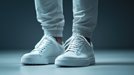 Golfer wearing stylish white shoes preparing for their next swing on the green