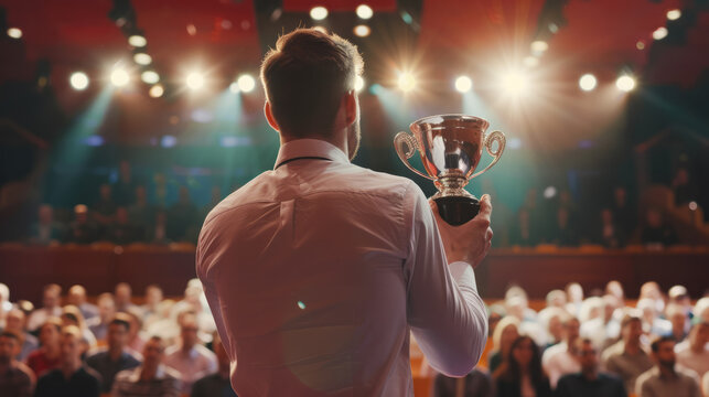 Confident speaker presenting in professional business conference