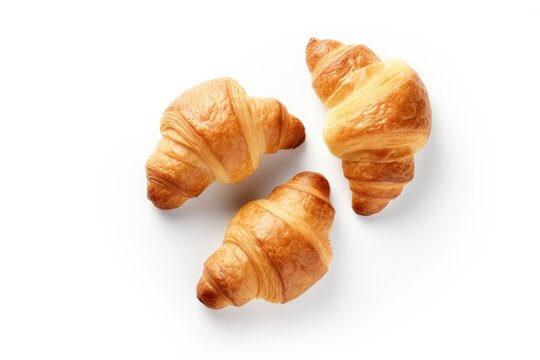 French breakfast with fresh croissants presented creatively on a white background representing healthy and delicious food From a top view perspective it serves